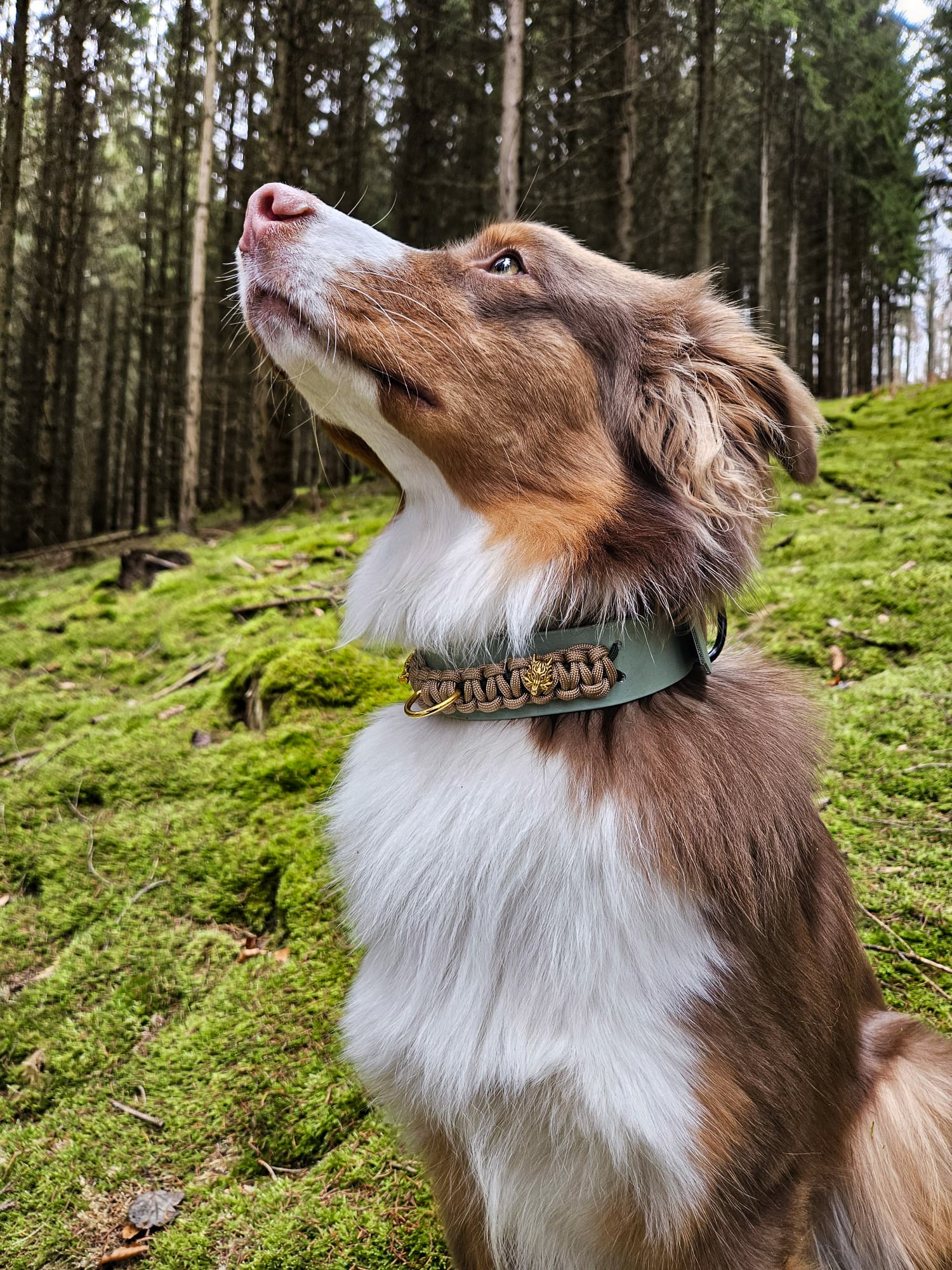 Unsere Halsbänder entstehen in sorgfältiger Handarbeit aus robuster Biothane, hochwertigem Paracord und ausgewählten Schmuckelementen.